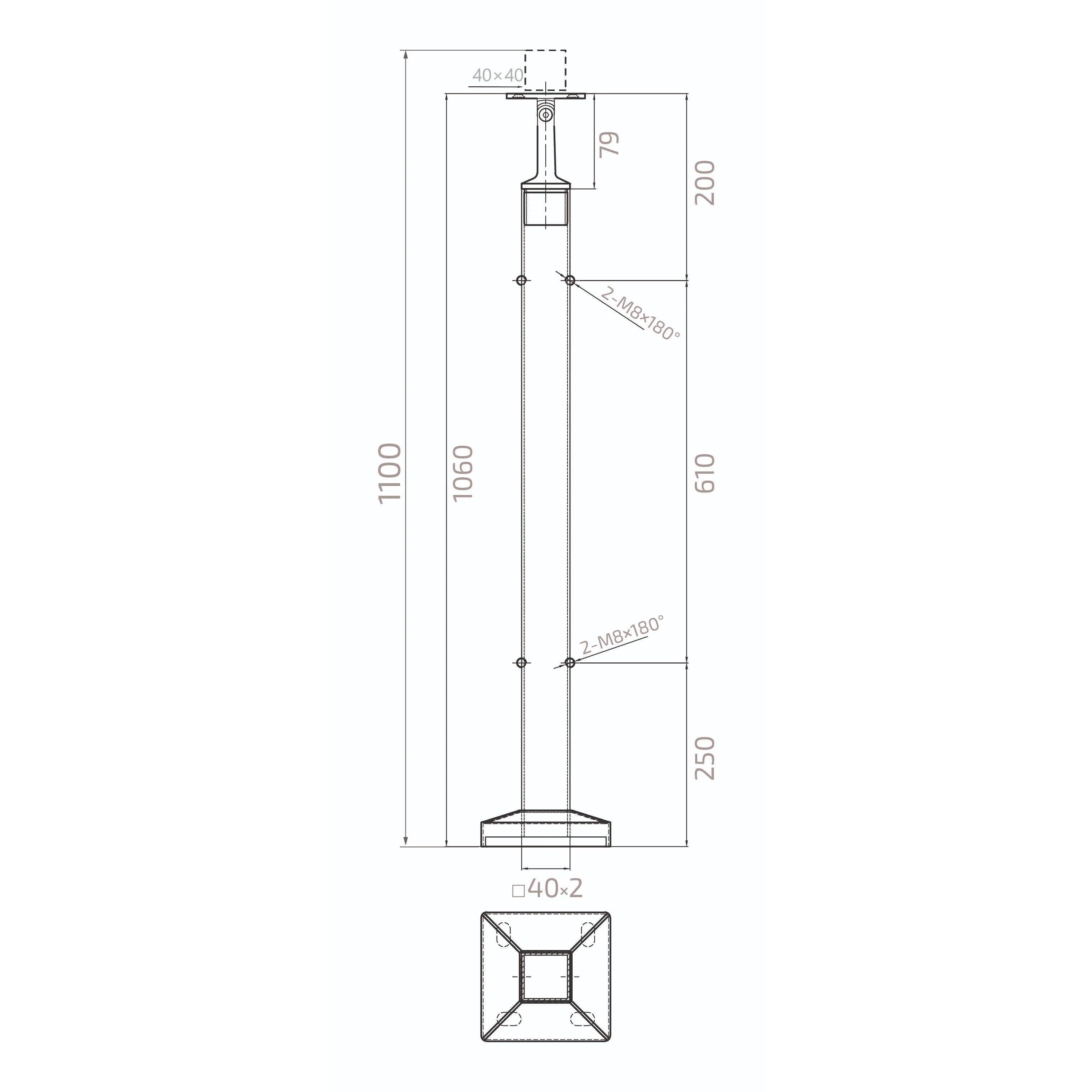 - Mittenstolpe med profil 40×40×2 mm, höjd 1060 mm