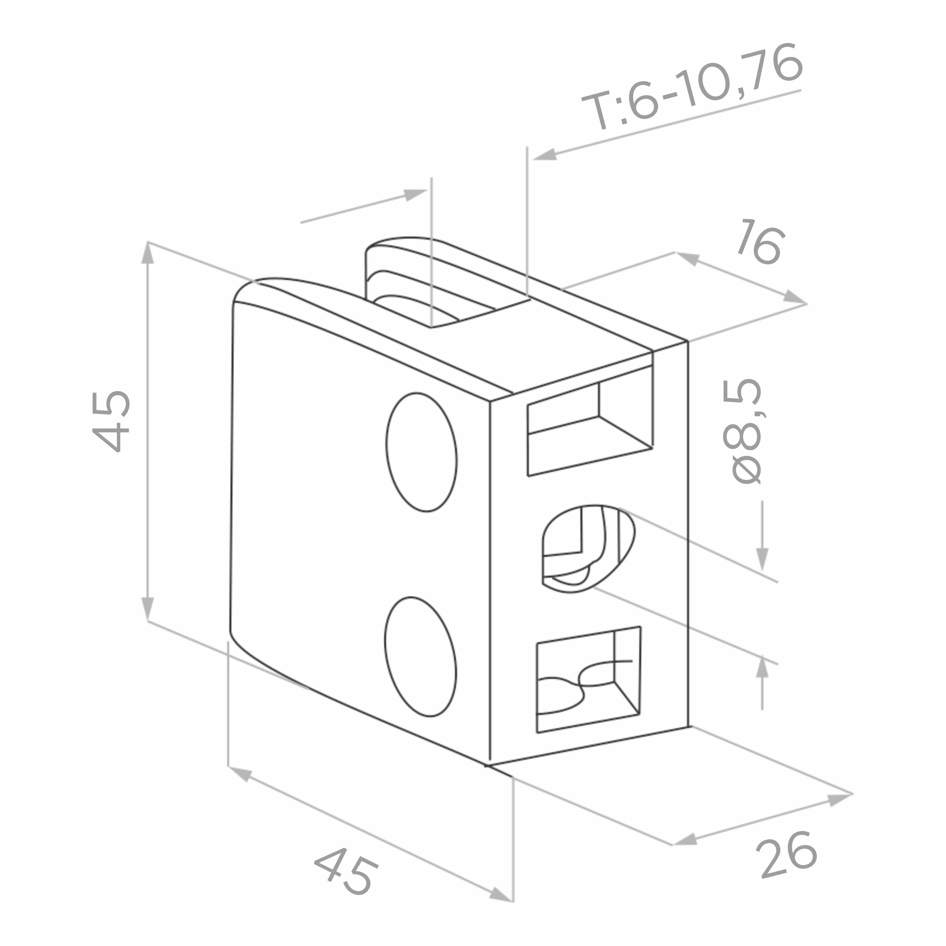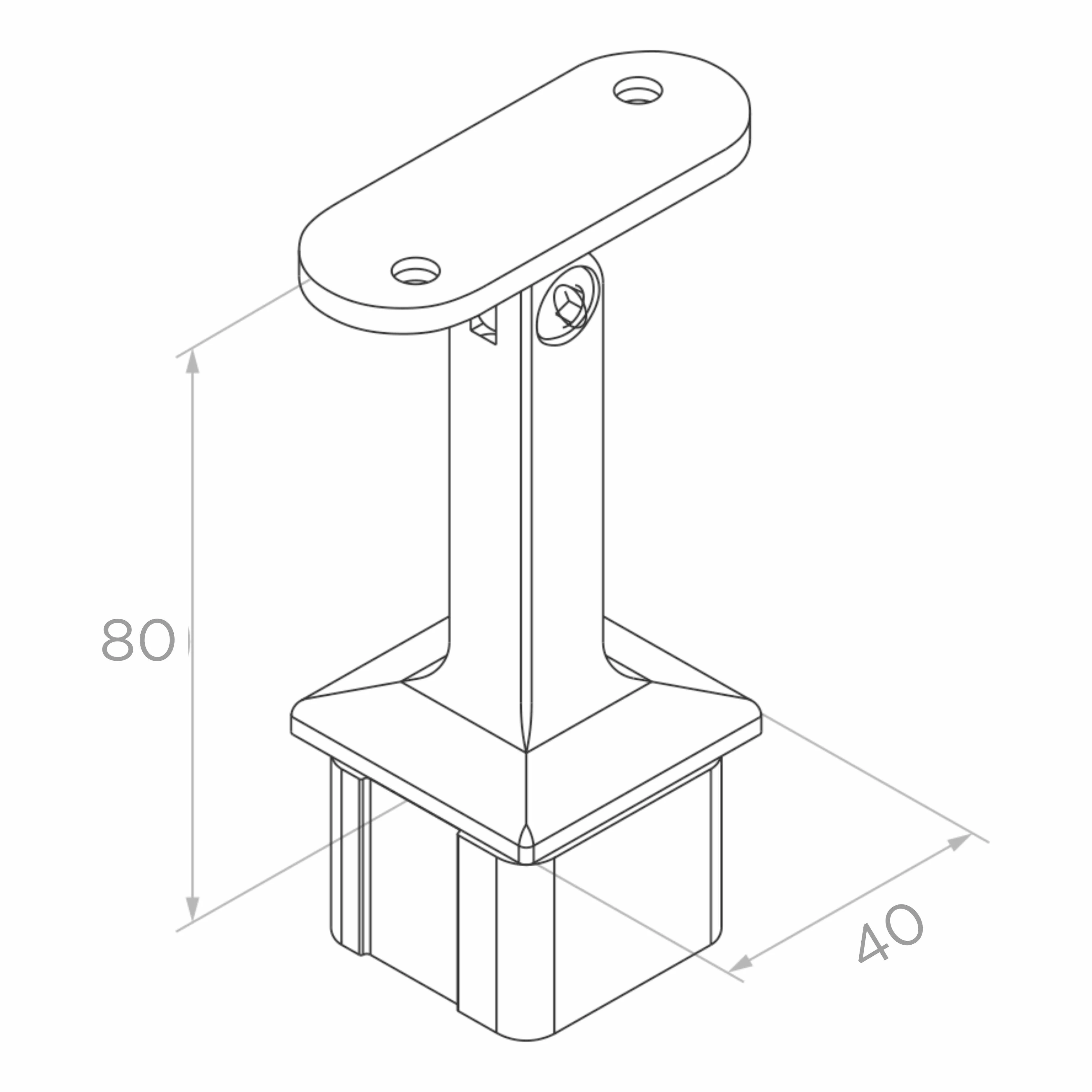 Handledarstöd med höjd 80 mm och bas anpassad för profil 40×40 mm — monteras ovanifrån stolpen med anaerob lim. Justerbar toppskiva möjliggör precis inställning av handledarens lutningsvinkel.