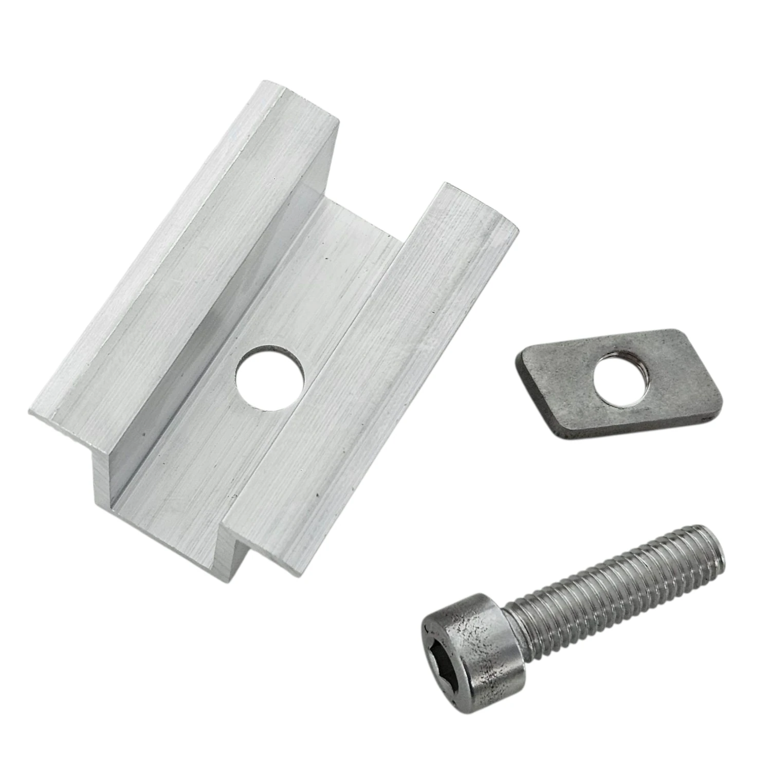 Den centrala klämfästet, komplett med skruv och insats, är en nödvändig komponent i solcellssystem. Den fäster solcellsmodulerna ordentligt till monteringskonstruktionen och förhindrar oönskade rörelser som kan påverka prestanda eller säkerhet. Den används för montering av solcellspaneler på både plana och sluttande tak.