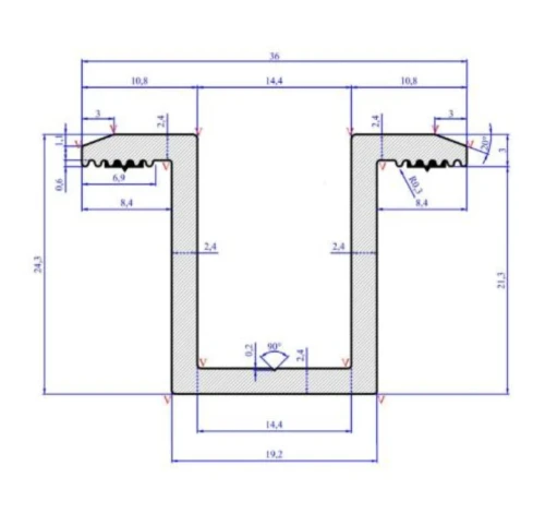- Aluminiumsprofiler anpassade för sexkantsskruvar