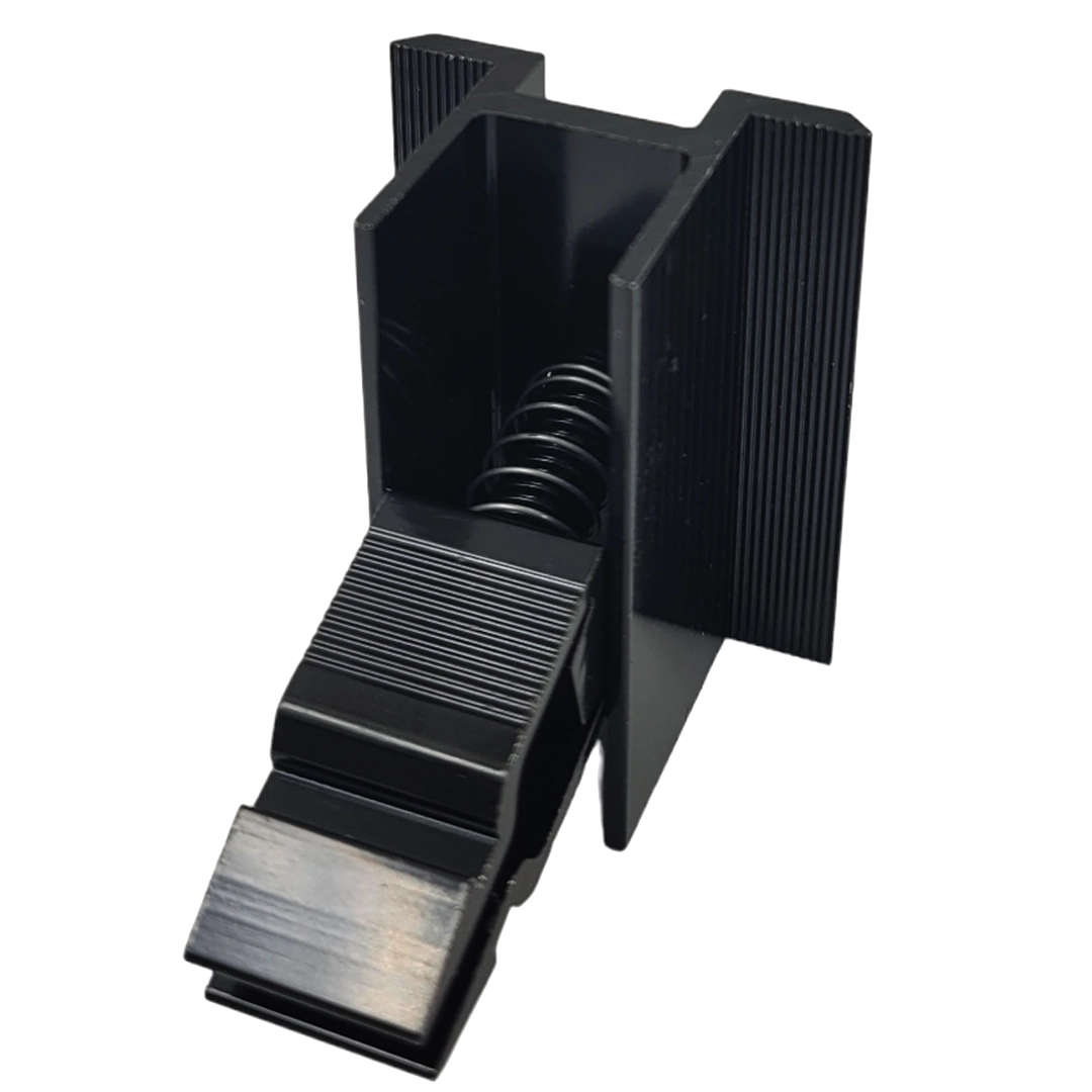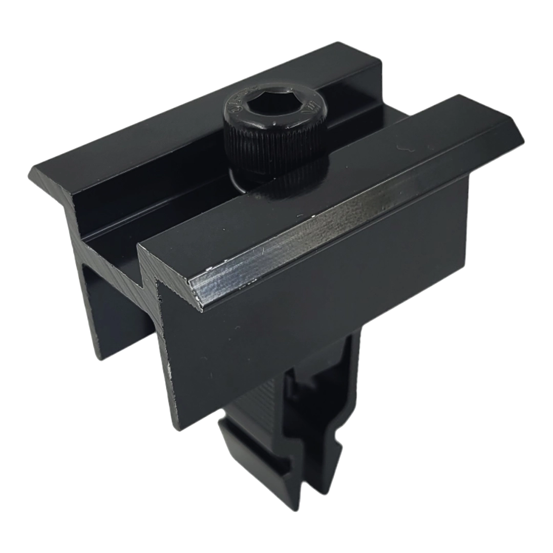 Centrumklämma i aluminium 6060 svart - Klicklås med mutter och skruv, svartlackerad L50 (typ 2) för fastsättning av solcellsmoduler.