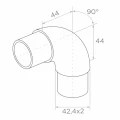 Mjukt infällt knä 90° för rostfri räcke – system 42,4 mm, satin