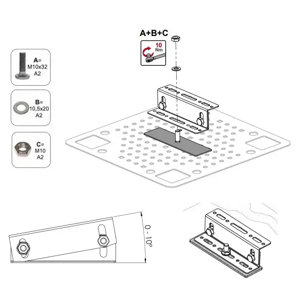 Monteringsplatta för takbeläggning 375x375mm CWL - Rostfritt stål H17 1.4016 för solcellssystem.