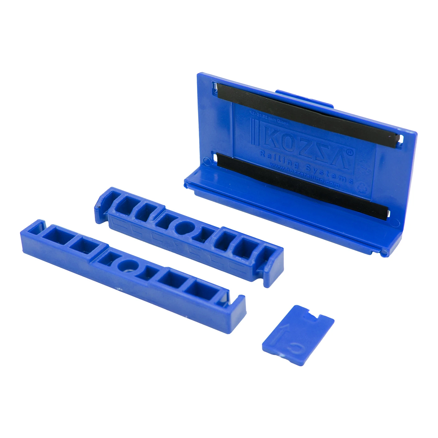Satsen innehåller 15 kompletta plastmontagelement som fördelas jämnt längs hela profilens längd. Varje komplett set består av en bas märkt A och B samt en distanslista, vilket underlättar korrekt montering och säkerställer repeterbarhet vid varje installation. Elementen är tillverkade av slitstark plast – de är motståndskraftiga mot deformation och garanterar ett säkert fäste för glasskivan både från sidan och uppifrån profilen.