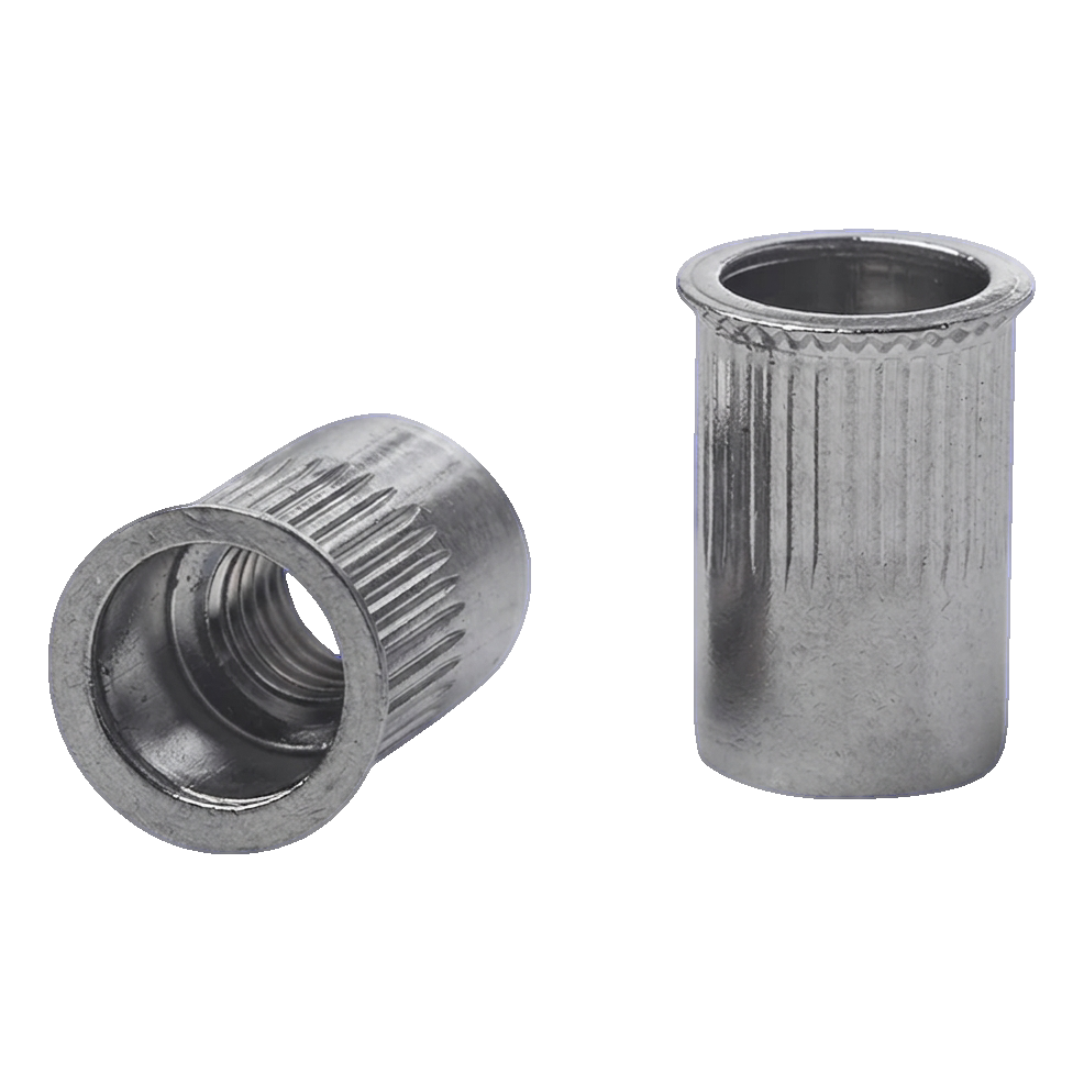 Tillverkning i rostfritt stål AISI 304 säkerställer hög korrosionsbeständighet — nitmuttern fungerar både inomhus och utomhus, under förhållanden med exponering för fukt och varierande temperaturer. Monteringen är blixtsnabb — vanlig nittång för nitbultar räcker, vilket gör att installationsföretag kan påskynda orderfullgörandet avsevärt.