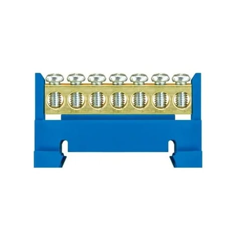 Nollplint för skena -7 blå - låg bas är en plint som monteras på en TH-35-skena och är avsedd för användning i elcentraler.