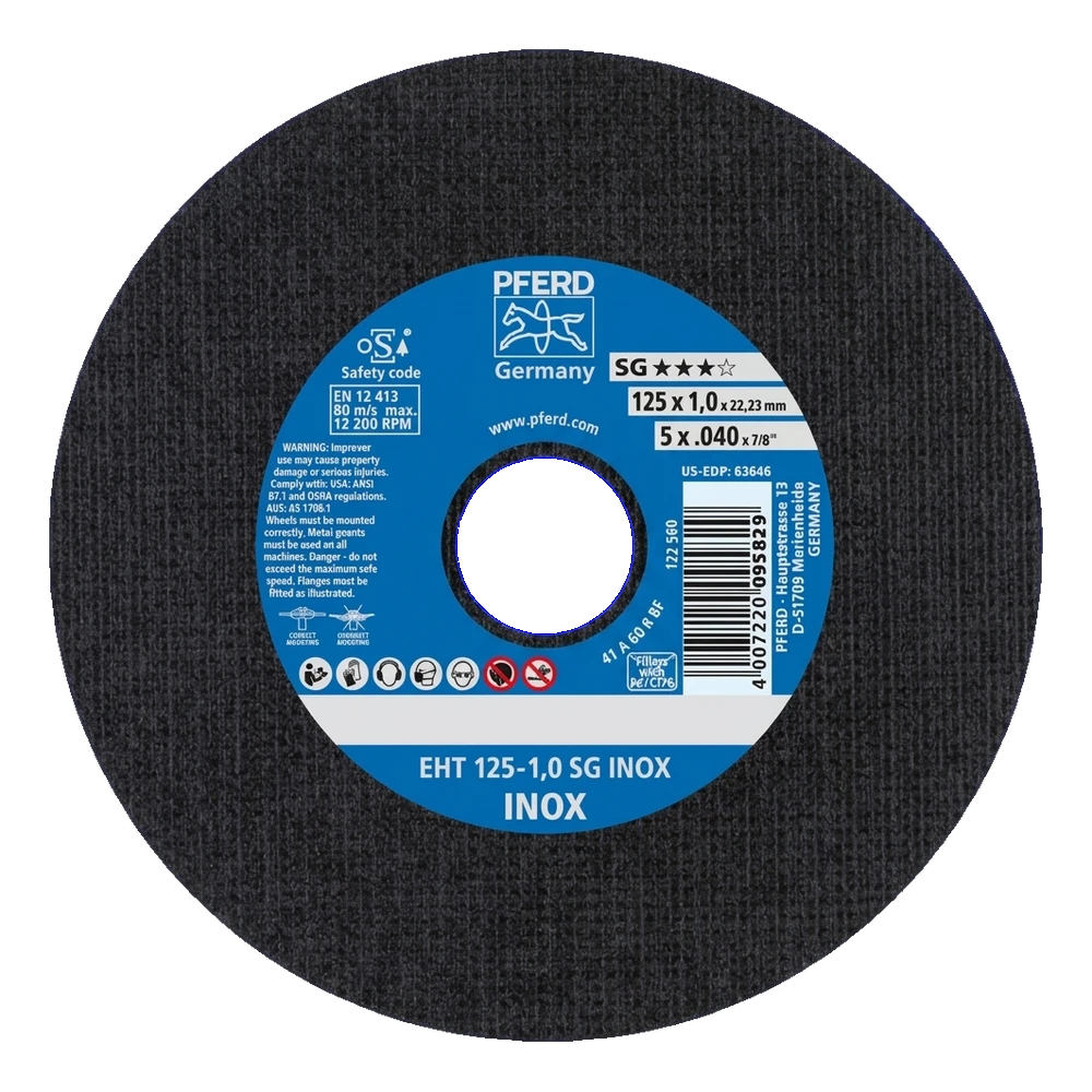 PFERD EHT 125-1,0 SG INOX – kapskiva för stål och rostfritt stål 125 × 1,0 mm