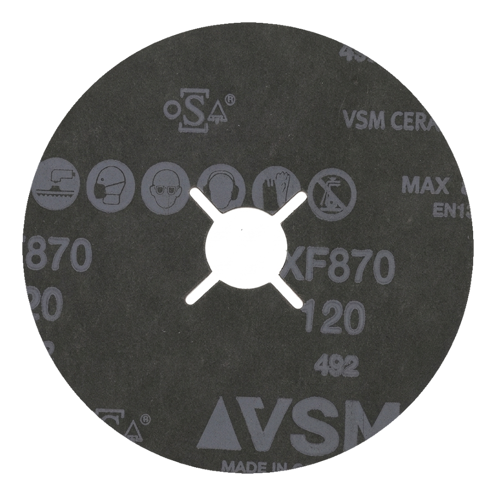 Rondellen monteras på standard vinkelslip ⌀ 125 mm med stödtallrik. Det stjärnformade centralhålet säkerställer säker montering och enkel byte utan extra verktyg. Produkten har oSa-certifikat som bekräftar säker användning enligt norm EN 13743.