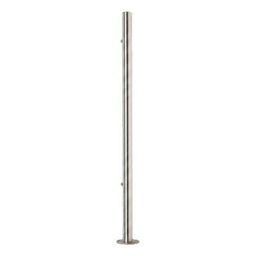 Ändstolpen spelar en nyckelroll för stabilisering och estetiskt avslutande av balustradkonstruktionen. Den påsvetsade basen med diameter ø100 mm säkerställer säker montering i golvet och garanterar hållbarhet och säkerhet för hela installationen. Satinerad finish ger moderna interiörer en elegant karaktär och komponerar perfekt med olika arkitektoniska stilar — både i bostads- och kommersiella objekt.