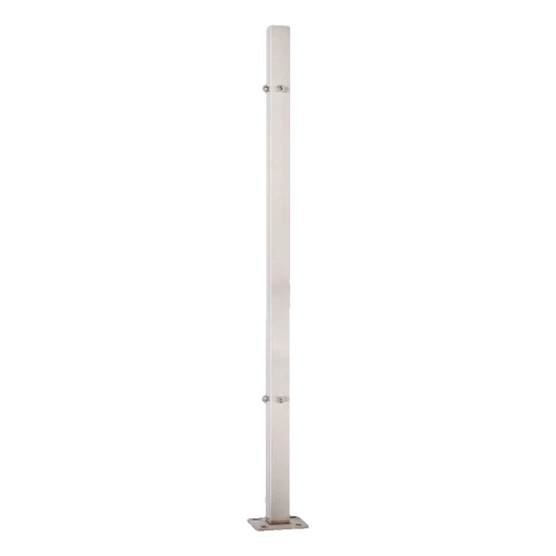 Stolpen monteras i golvet, vilket ger exceptionell stabilitet för hela räckeskonstruktionen. Den är utrustad med 4 precist borrade hål med gänga M8 fördelade på två nivåer (2 hål på varje), vilket möjliggör snabb skruvning av alla typer av beslag och kopplingar för räcket. Denna konfiguration av hål är optimalt anpassad för hörnstolpen — tillåter montering av element i 90° vinkel.