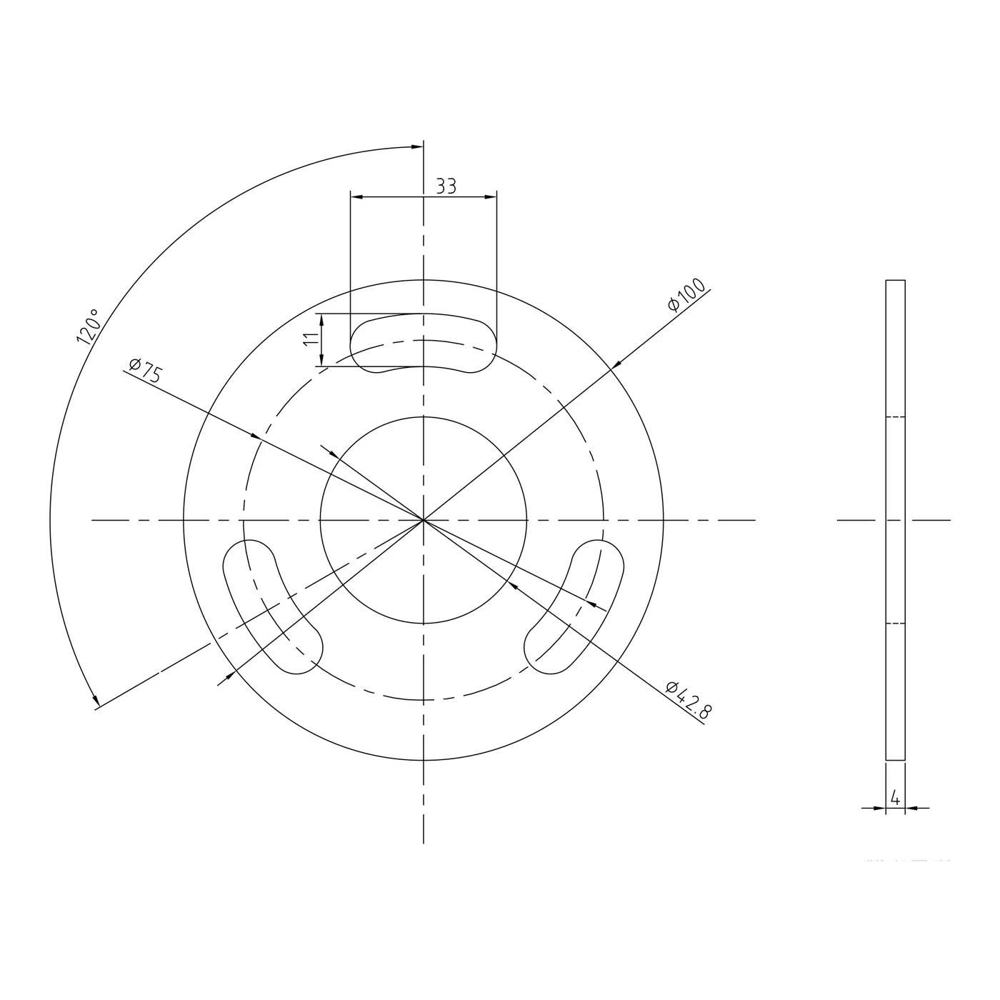 - Delcirkeldiameter bönformade hål: ø75 mm