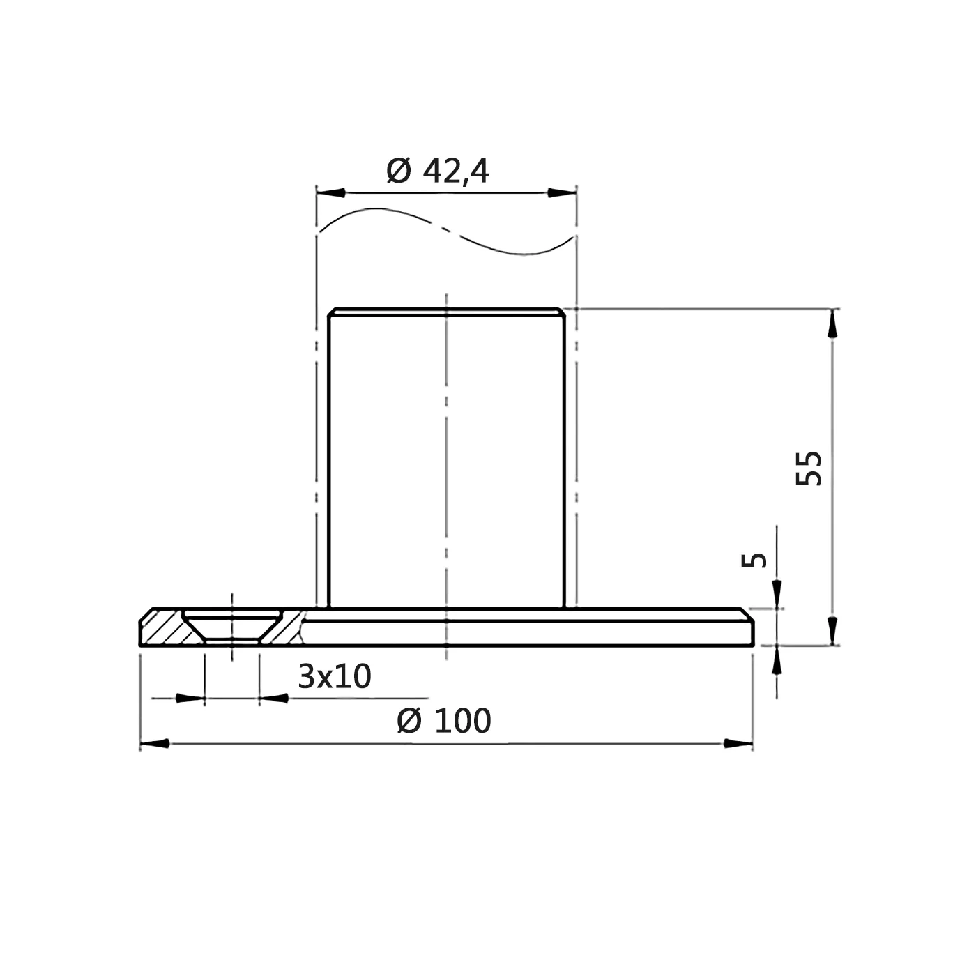 - Sockeldiameter (fläns): Ø 100 mm