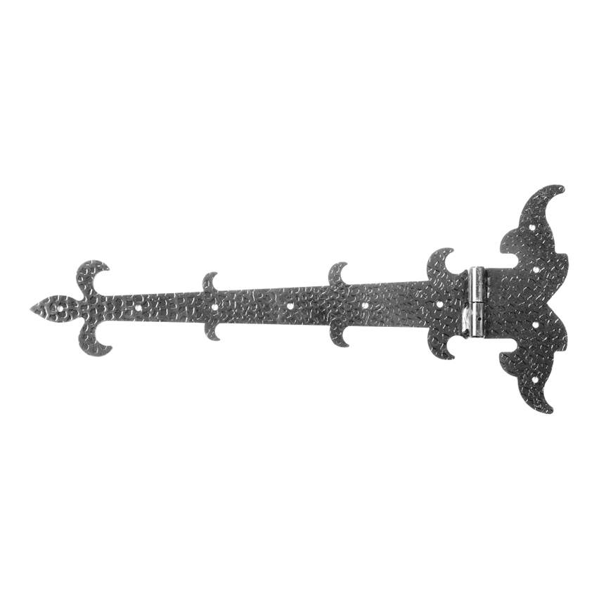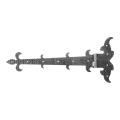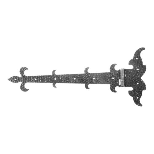Utförande i stål säkerställer hög mekanisk hållfasthet och hållbarhet. Dekorativa element — liljemotiv på armens ände samt dekorativa böjningar — gör detta hängsla till ett utmärkt val för grindar och portar i rustik, lantlig eller historiserande stil.