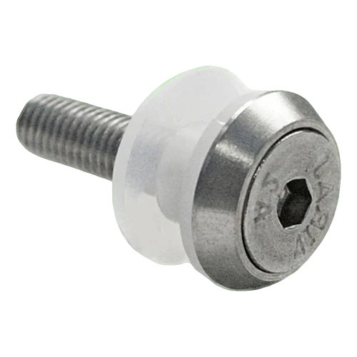 Den koniska brickan med diameter 22/8 mm fördelar trycket jämnt över glasytan, och de medföljande isolerande brickorna eliminerar effektivt kontakt mellan glas och stål – vilket skyddar mot repor, kontaktkorrosion och punktspänningar. Minsta erforderliga monteringshål i glaset är 12,5 mm.