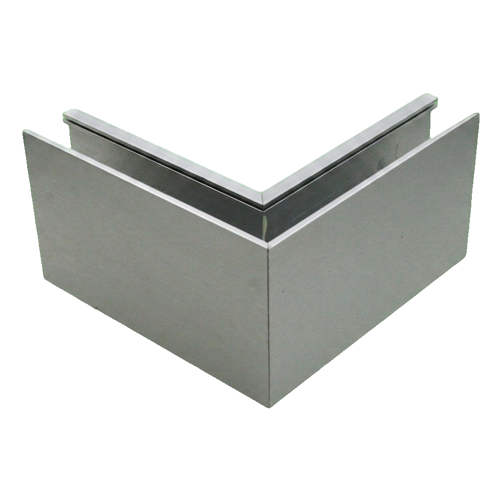 Aluminiumhörnprofil för yttervinkel av typ U avsedd för stolplösa räcken (helglas) med montering uppifrån. Möjliggör estetisk utformning av 90° vinkel utåt, samtidigt som den bibehåller en enhetlig linje på räcket vid hörn på terrasser, balkonger och trapphus. Satinytbehandlingen på aluminiumet imiterar troget effekten av rostfritt stål, vilket gör att profilen harmoniserar väl med övriga delar i det platta systemet.