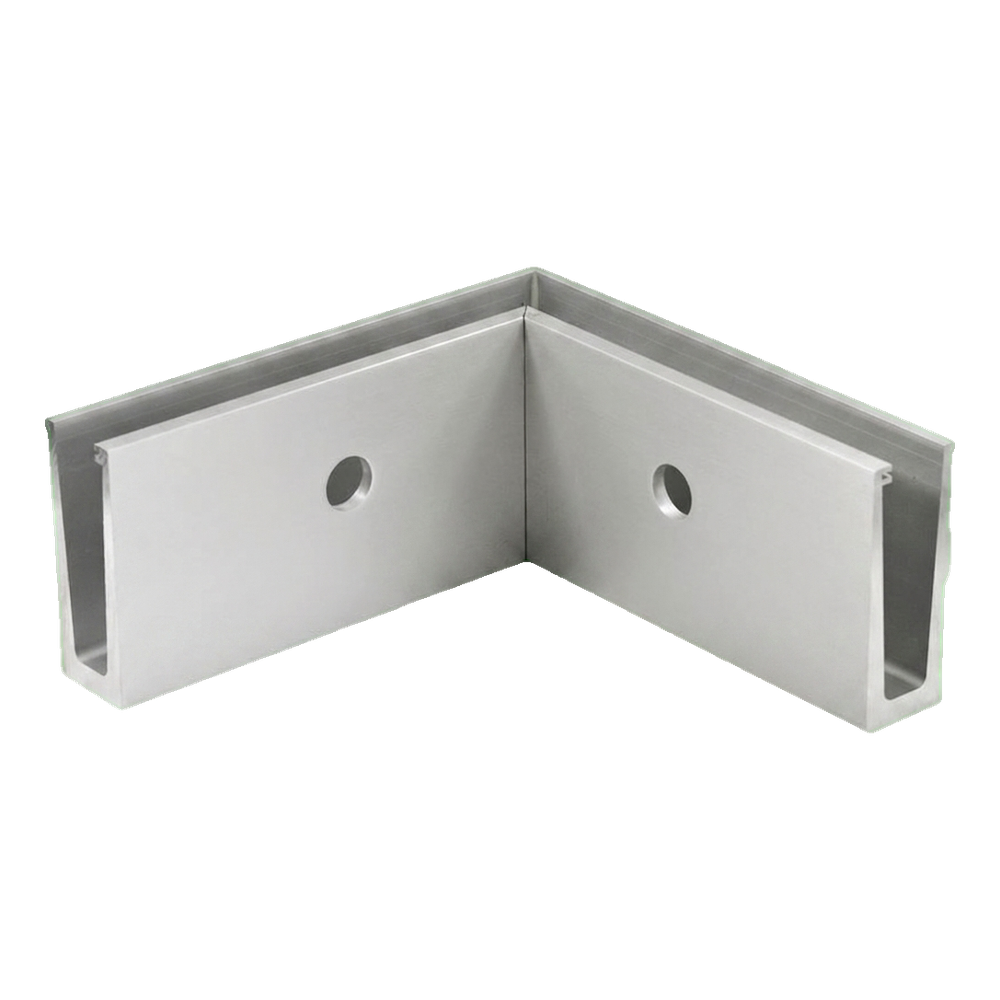 Aluminium inre hörnprofil för helglasbalkonger (stolplösa) med sidmontage. Möjliggör estetisk utföring av 90° vinkel vid installation av härdat eller laminerat glas. Tack vare det plana systemet och den råa aluminiumytan imiterar profilen perfekt utseendet av rostfritt stål i satin, samtidigt som den förblir lättare och enklare att bearbeta.