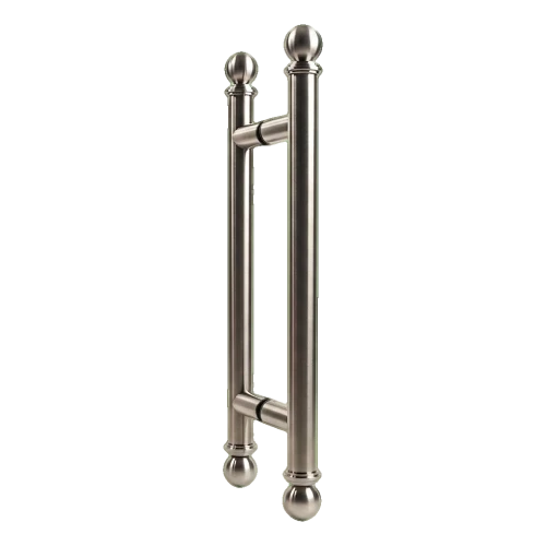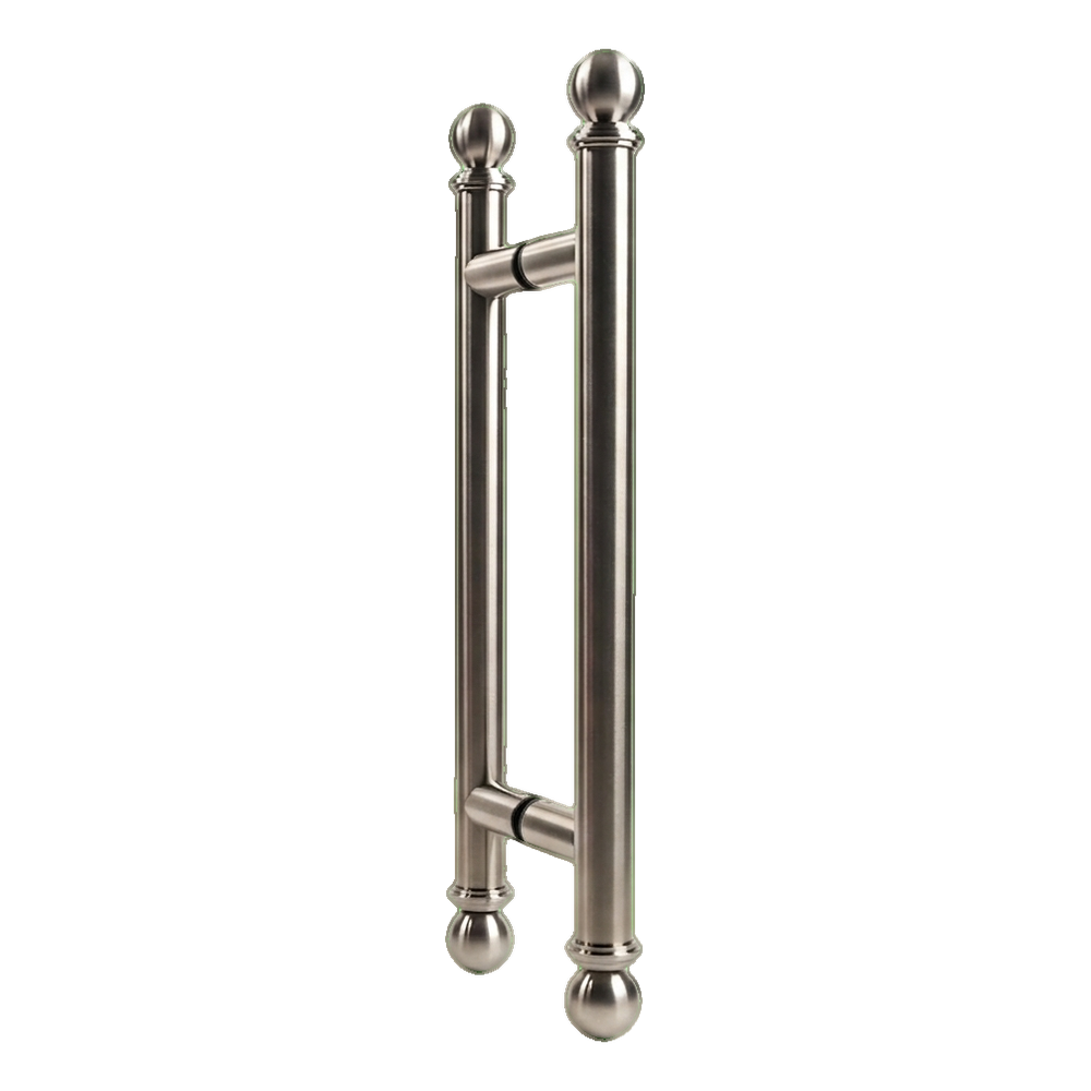 Dubbelsidig handtag PSG är ett elegant dörrhandtag med klassisk design, tillverkat helt av högkvalitativt rostfritt stål AISI 304 i satinerad finish. De dekorativa avslutningarna i form av kulor ger det en stilfull, representativ karaktär — perfekt för kommersiella objekt, kontor, hotell och exklusiva bostadsmiljöer.