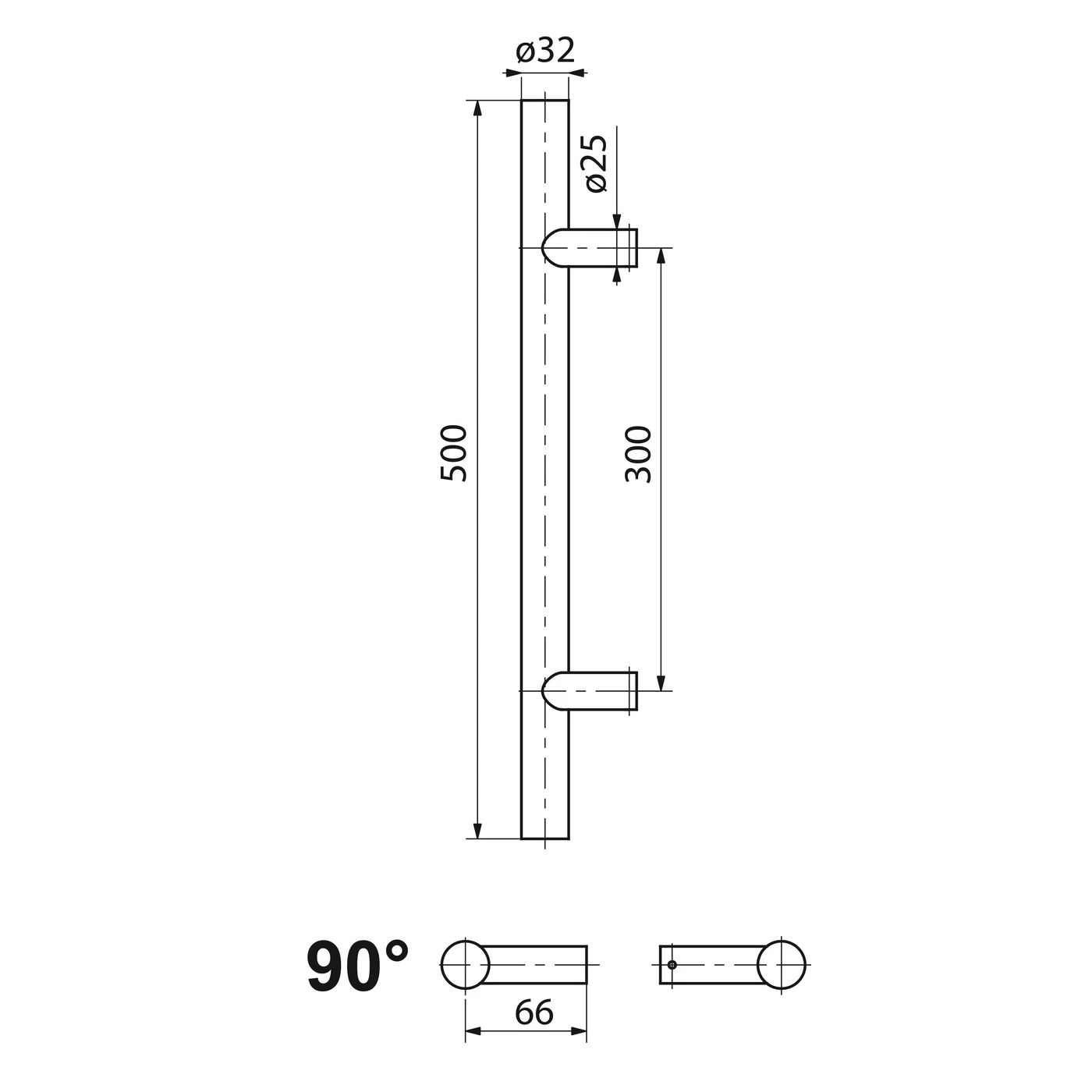- Handtagsrörets diameter: Ø32 mm