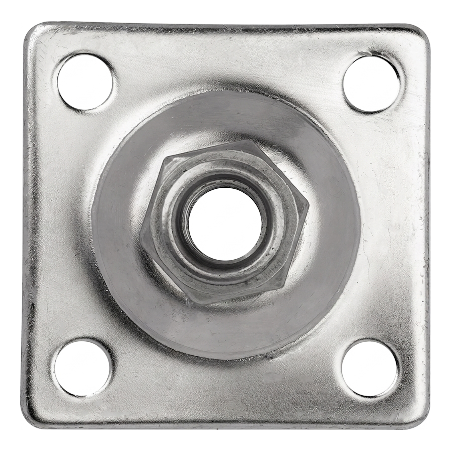 Plattans universella konstruktion med centralt placerad sexkantsmutter och fyra monteringshål säkerställer en säker, stabil förbindelse mellan gångjärnet och stolpen eller grindkonstruktionen. Den råa stålens yta möjliggör vidare bearbetning — pulverlackering, lackering eller bibehållande i naturlig version.