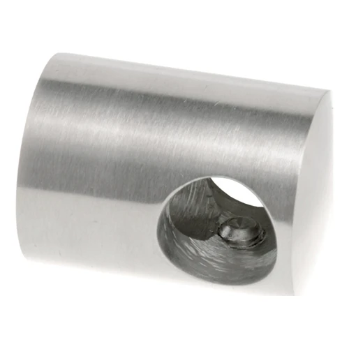 Beslaget har formen av en cylindrisk korpus med genomgående hål som stången eller röret går igenom. Montering till ytan sker underifrån via monteringshål. Två sidoskruvar möjliggör säker låsning av stången inuti beslaget. Tack vare kompakta dimensioner smälter elementet diskret in i modern design hos räcken av rostfritt stål.