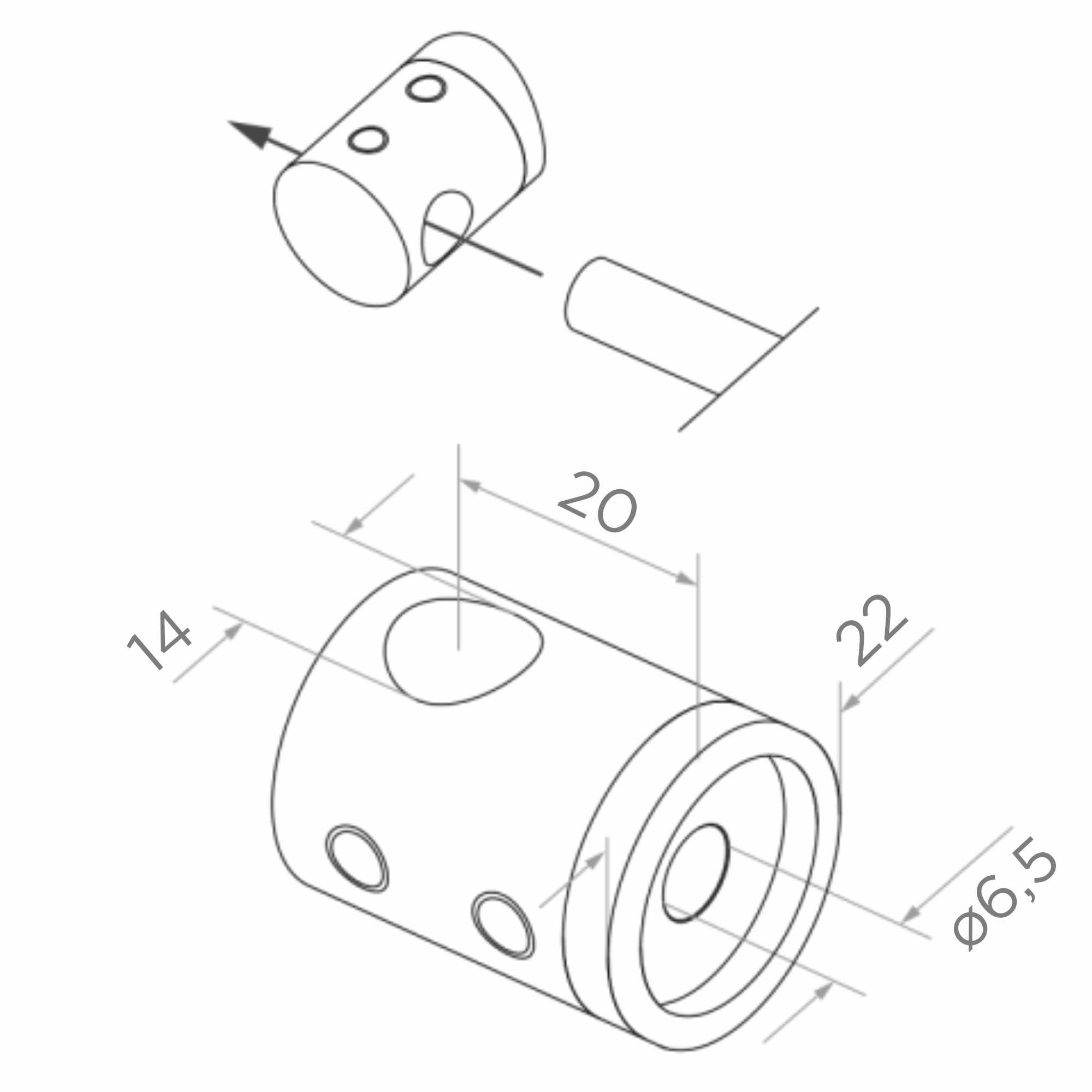 - Diameter genomgående hål (för stång/rör): fi 14 mm