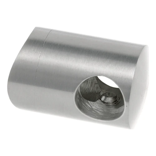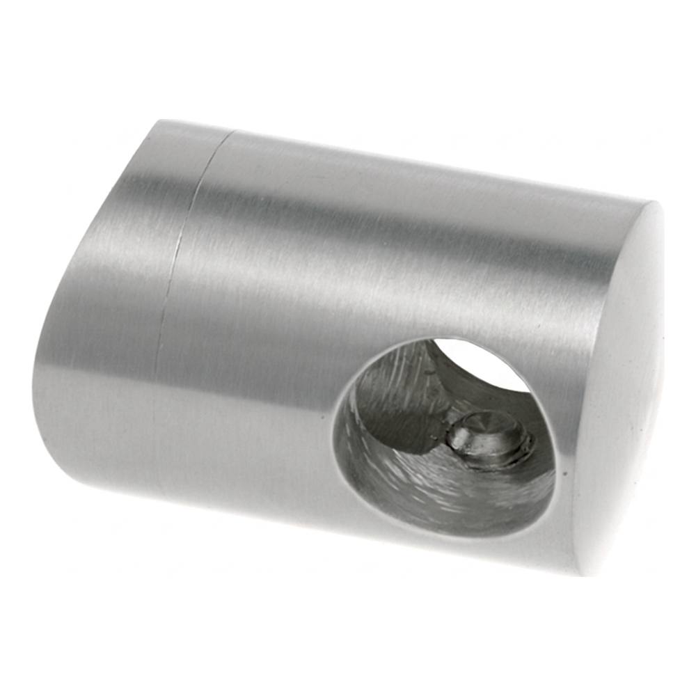 Tillverkad av rostfritt stål AISI 304 med satinfinish, passar fästet perfekt ihop med andra komponenter i räcksystemet 42,4 mm. Den tvådelade konstruktionen (hus + hylsa) möjliggör snabb montering — det räcker att föra in stången genom genomgångshålet och dra åt elementet med centralskruven.