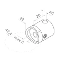 Genomgångsfäste för vajer ø 6 mm avsett för montering på stolpe av rör med diameter 42,4 mm. Kompakt element som används i rostfria baluster med vajerfyllning — möjliggör enkel genomdragning av vajer genom stolpen och säker fästning med klämskruv.