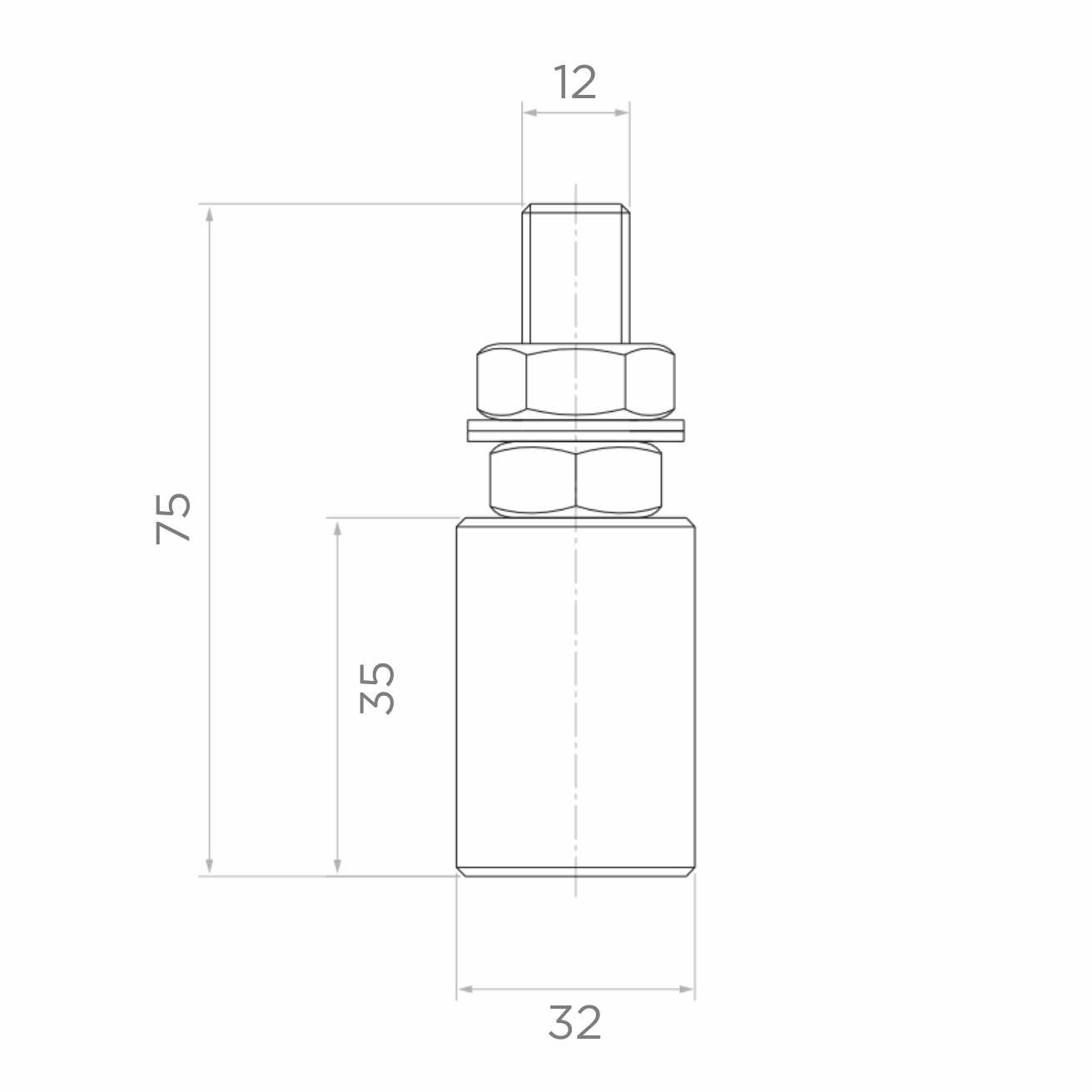 - Gängad tapp med muttrar möjliggör justering och säker fästning
