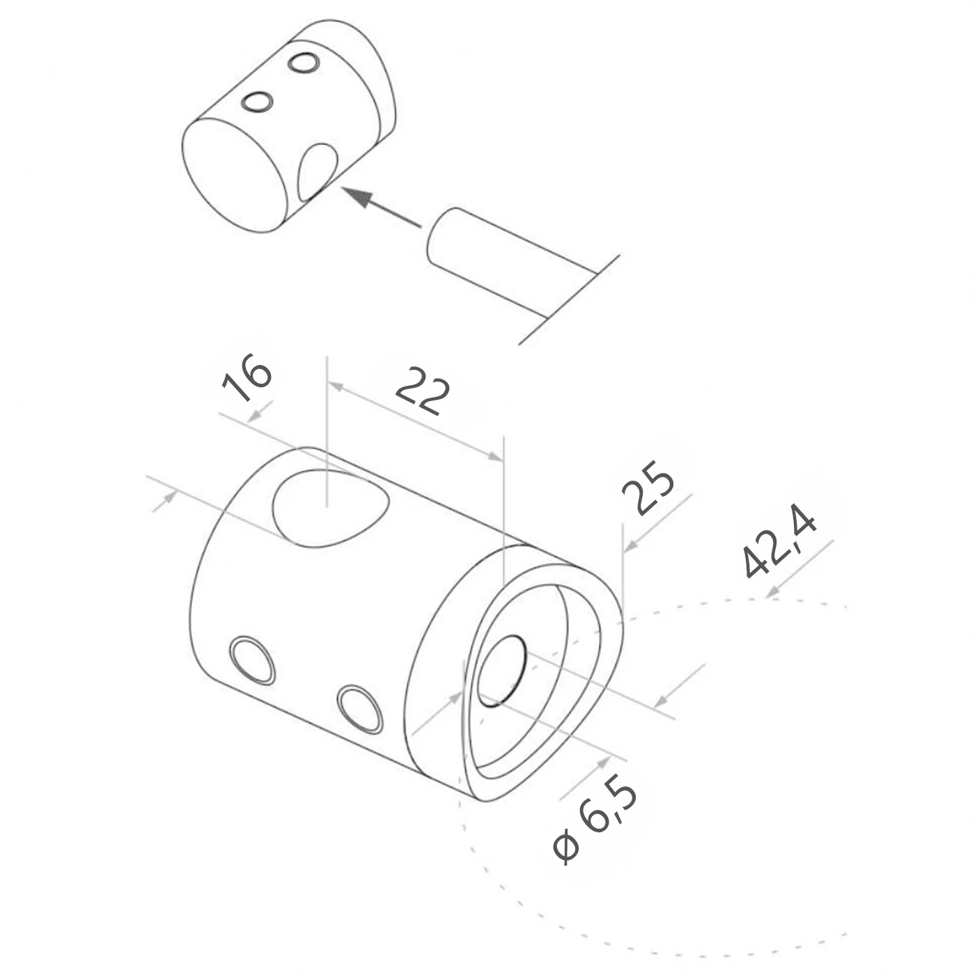 - Monteringshålsdiameter (genomgående): ø6,5 mm