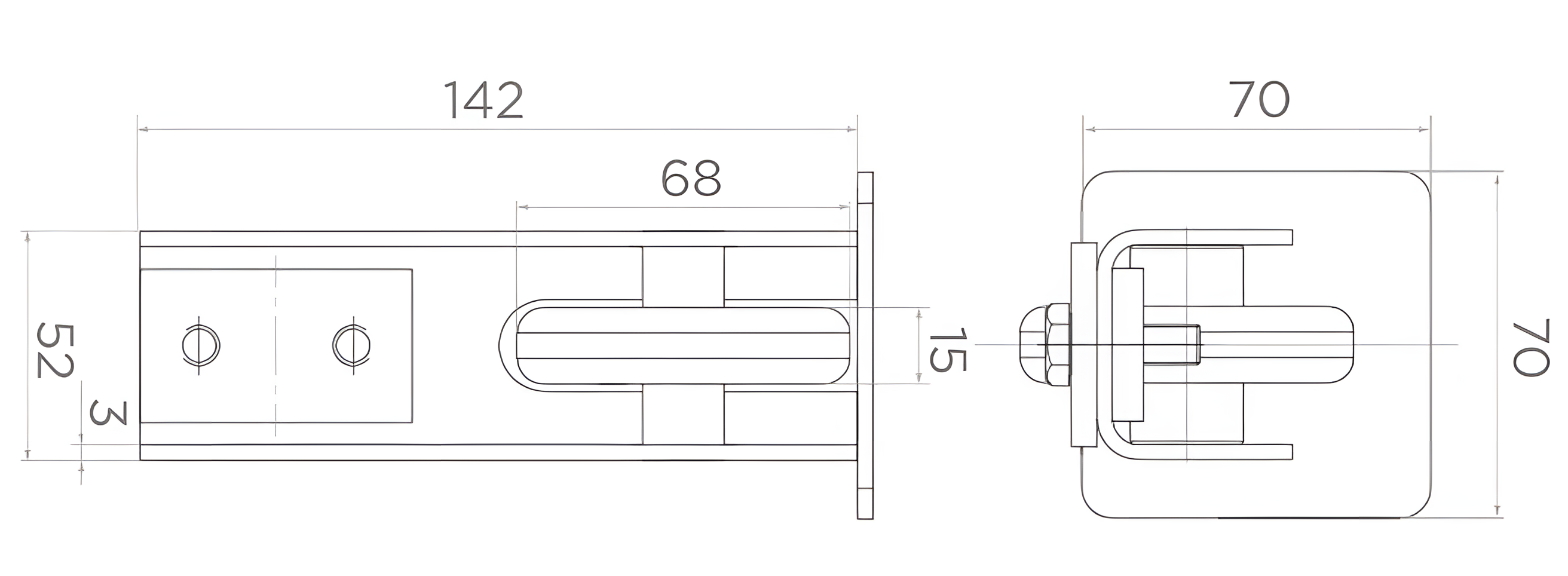 Fyrkantiga täckpanelen 70 × 70 mm stänger estetiskt skenans profil, ger grinden ett snyggt utseende och skyddar styrskenans insida. Den galvaniserade ytan ger hög korrosionsbeständighet, vilket gör att elementet fungerar i installationer utsatta för varierande väderförhållanden — utan behov av ytterligare korrosionsskydd.