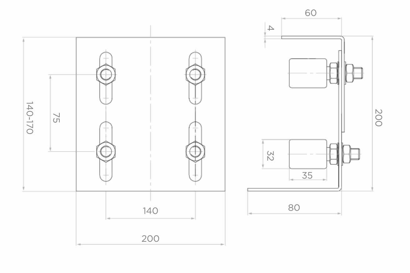 - Monteringsplåtens mått: 200 × 200 mm