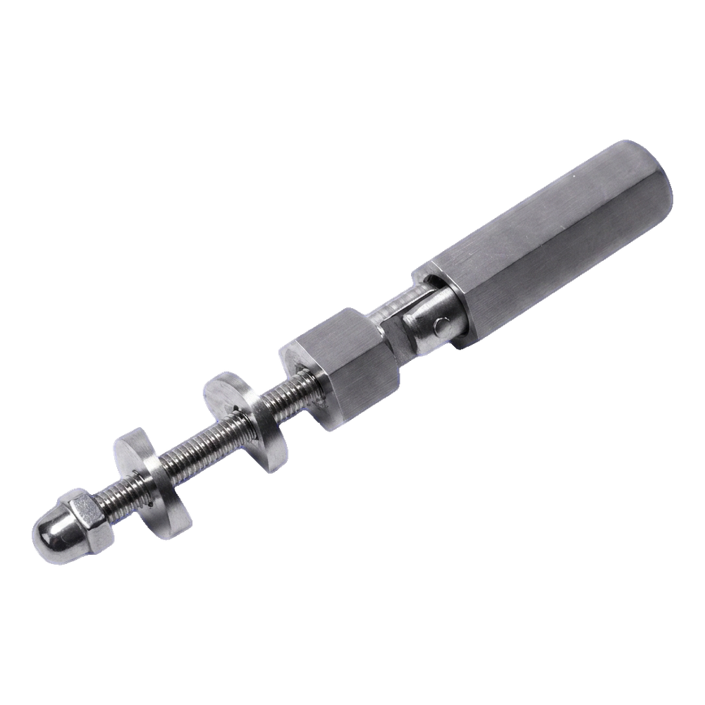Beslaget fungerar som startelement för kabeln i räckessystemets fyllning. Fungerar tillsammans med räckesposter med diameter 42,4 mm — den mest populära standarden i rostfria räckessystem. Möjligheten att montera på plan yta gör det till en universell lösning både i tillämpningar med bärrör och i konfigurationer där kabeln fästs direkt på väggar, stolpar eller konstruktionselement.