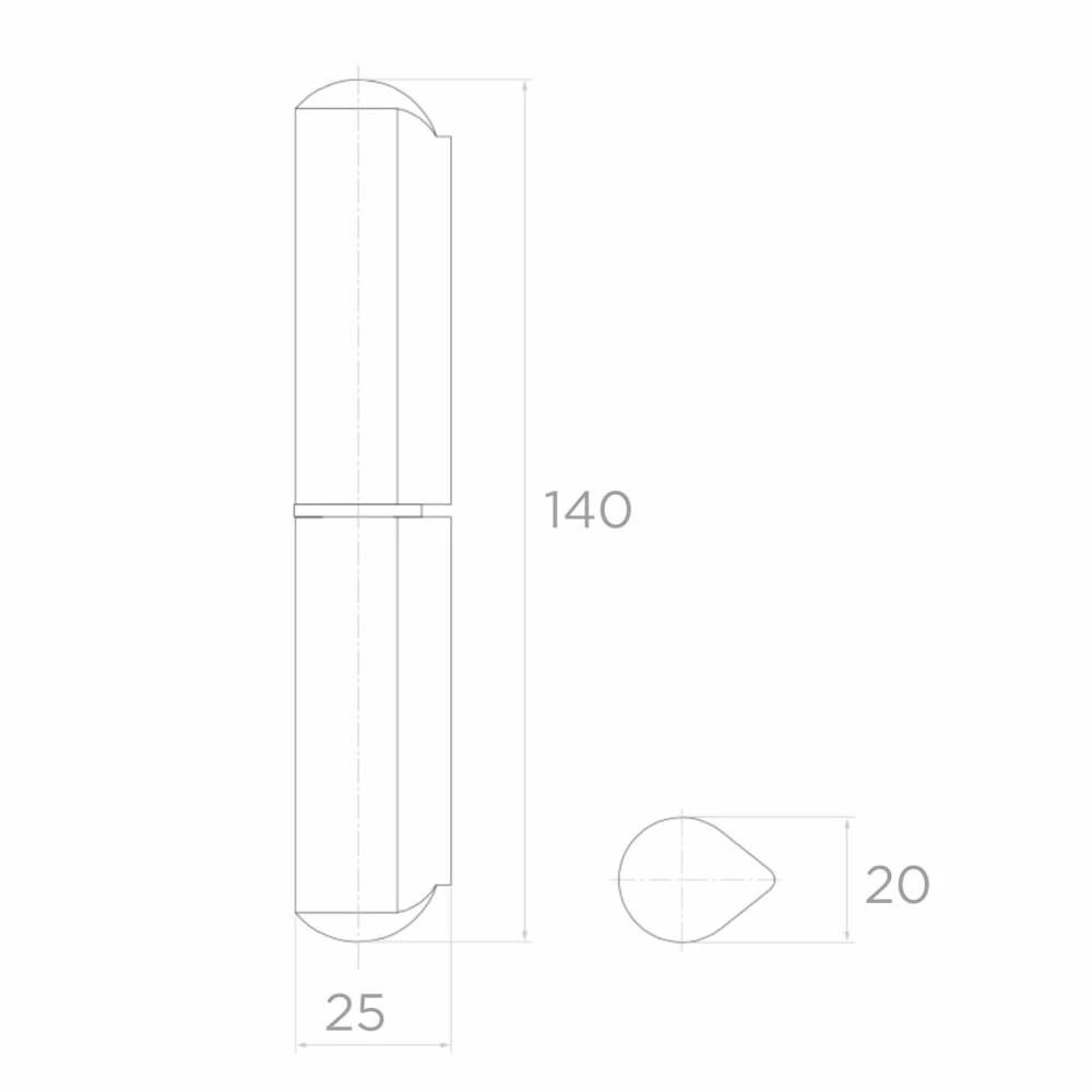 PSG rullat svetsbart gångjärn D20 x 140 mm – stålgångjärn för grind