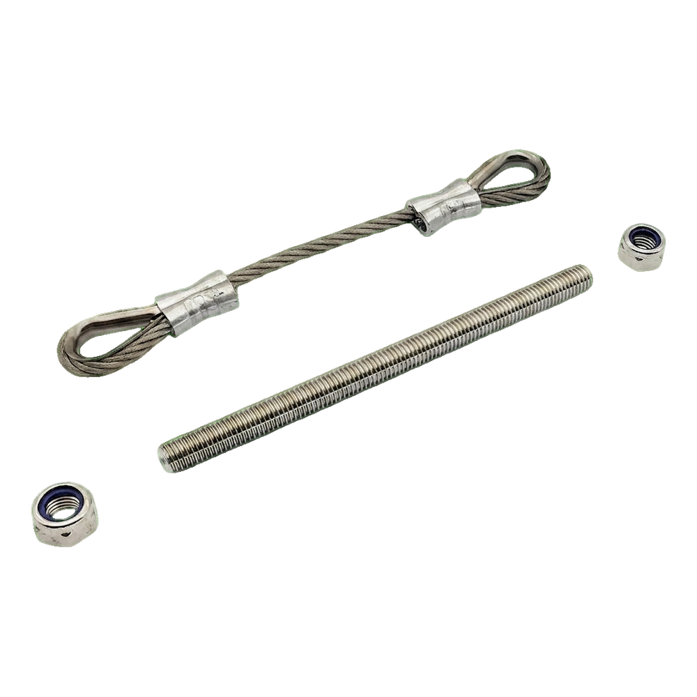 Tillverkad helt av rostfritt stål, vajjern är korrosionsbeständig och tål väderförhållanden, vilket garanterar mångårig driftsäker användning. Användning av pressklämmor i vajjerns ändar säkerställer varaktig och säker förbindelse av öglorna, och de självlåsande muttrarna eliminerar risken för självlossning på grund av vibrationer.