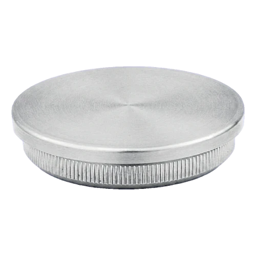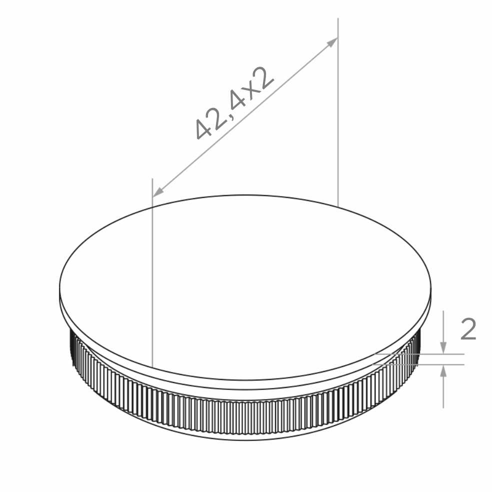 Platt påslagbar slutkåpa är ett estetiskt avslutningslement avsett för att stänga öppna ändar på räckesrör med diameter Ø42,4 mm och väggstjocklek 2 mm. Tack vare användningen av räfflad intryckt tapp monteras slutkåpan snabbt och säkert genom påslagning – utan behov av svetsning eller limning.