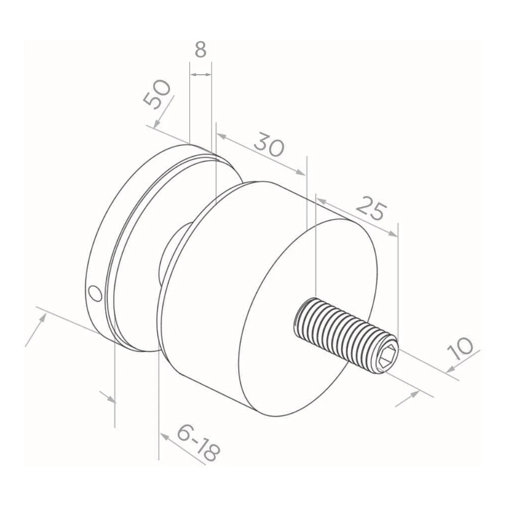 Punktinfästning för glas fi 50 mm AISI 304 satin – gänga M10