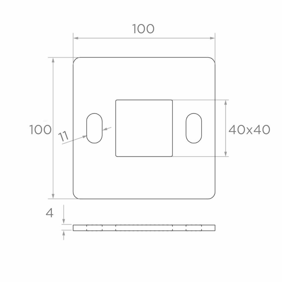 Räckestolpfot för svetsning 100×100 mm – rostfritt stål AISI 304, system 40×40