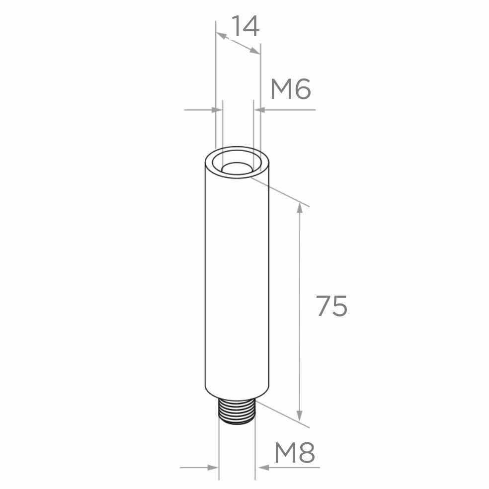 Räckestöttestav fi 14×75 mm AISI 304 – gänga M8/M6, satinfinish