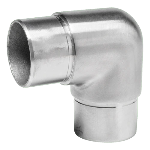 Rundböjd inklistad knä 90° är en precisionskoppling för räcken avsedd för rör med diameter 42,4 mm och väggtjocklek 2 mm. Tack vare den rundböjda formen ger elementet räcket en elegant, avrundad profil – perfekt överallt där estetisk finish av hörn och riktningsändringar av handledare krävs.