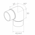 Rundböjd räckesknä 90° inklämmad för rör 42,4 mm – rostfritt stål AISI 304 satin