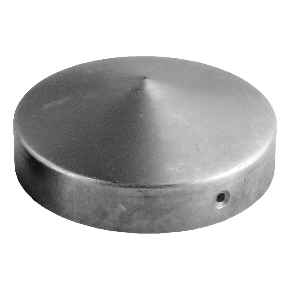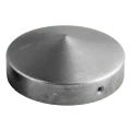 Den karakteristiska koniska formen på ovansidan säkerställer effektiv avrinning av regnvatten. Monteringshål på sidorna möjliggör snabb och hållbar fästning av taket på stolpen — genom skruvning eller nitning. Elementet är lämpligt för både metall- och trästolpar.