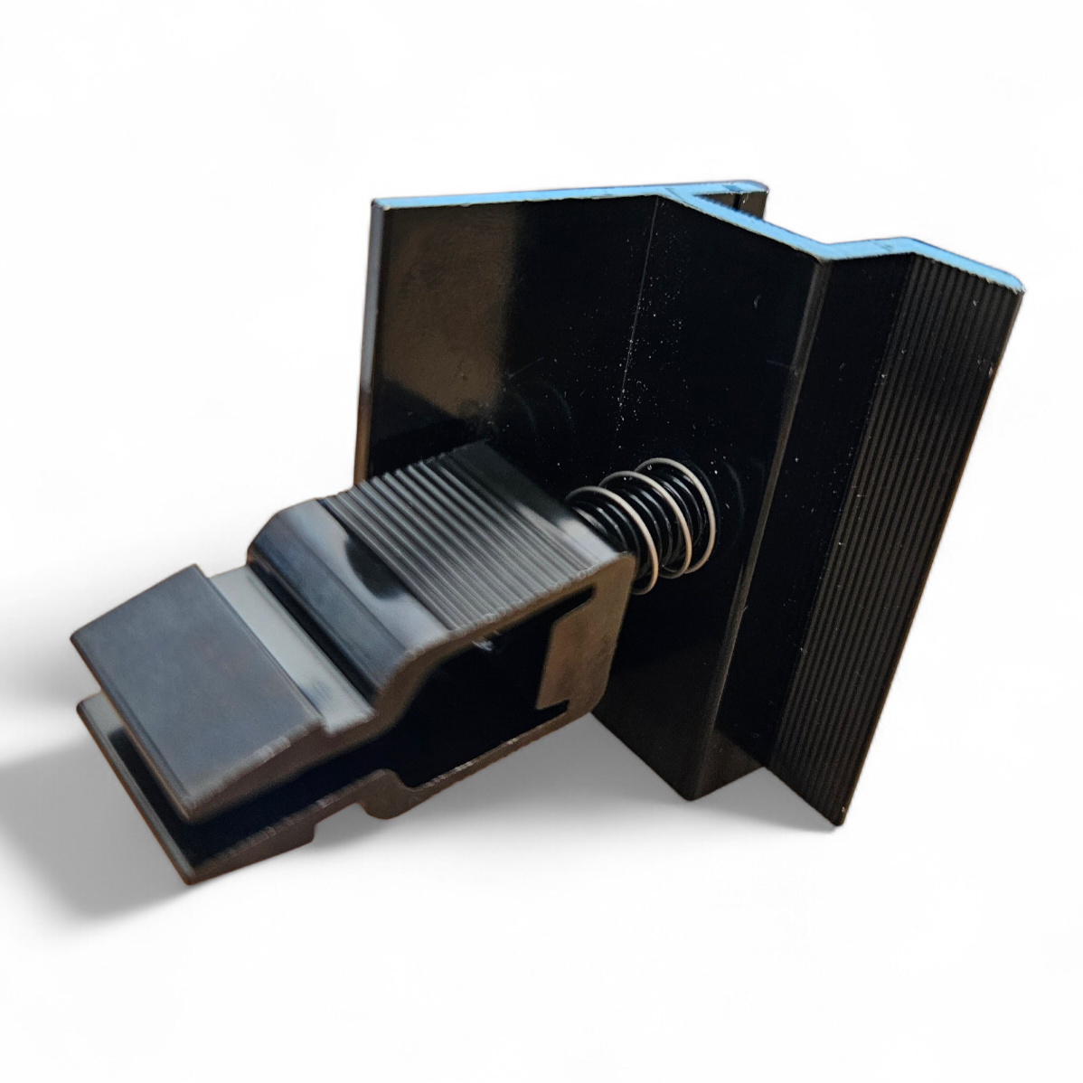 Klämman är tillverkad av aluminium 6060 med svart pulverlackering, vilket ger hög korrosionsbeständighet och ett estetiskt utseende som passar mörka PV-moduler. Det svarta utförandet är ett allt vanligare val bland installatörer som vill ha ett enhetligt utseende på hela anläggningen.
