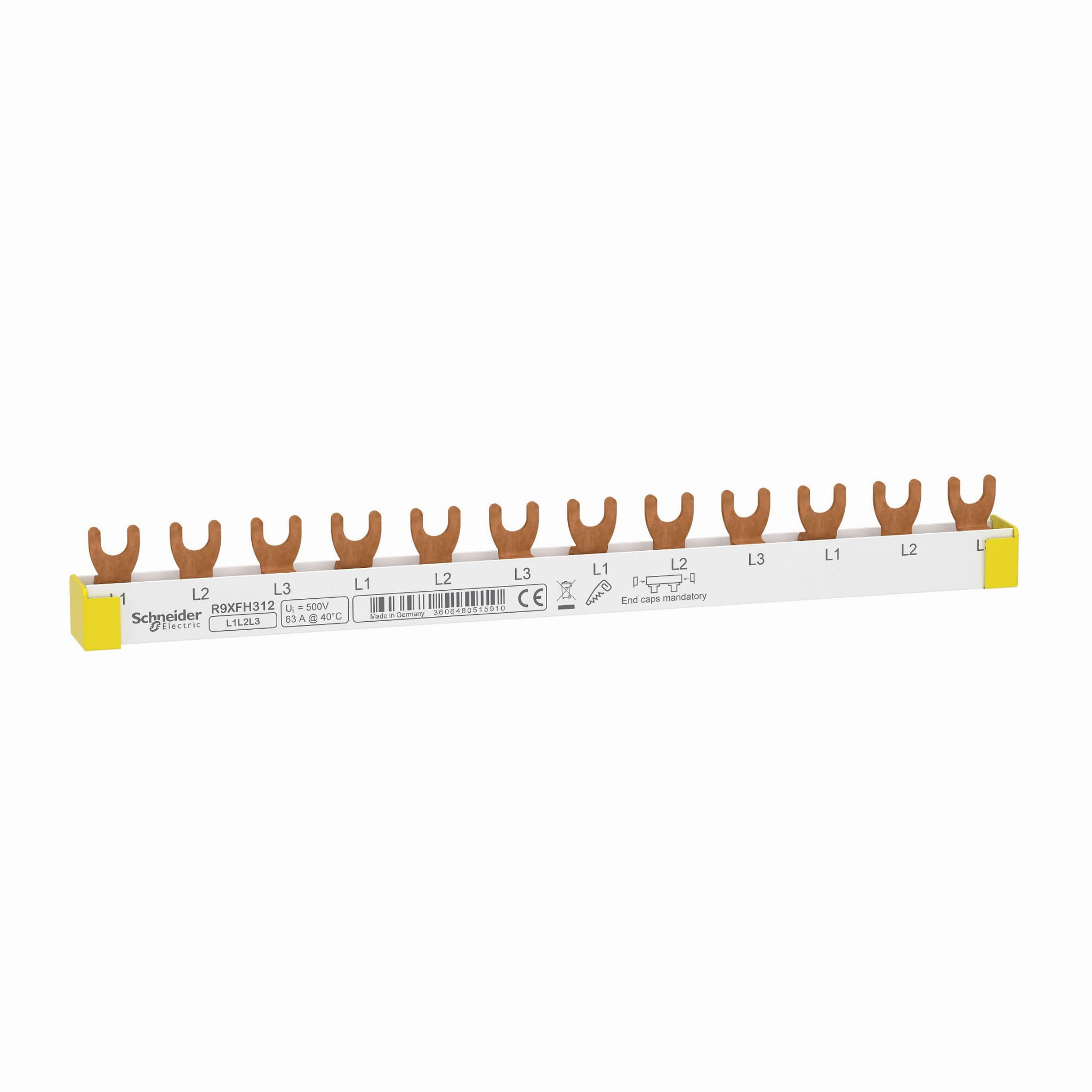 Skena för gaffelanslutning 12 moduler 3-poliga 63A R9XFH312 SCHNEIDER ELECTRIC är utformad för att överbrygga, leverera och ansluta produkter till varandra. Typ av buss bör väljas enligt typ av enhet, med hänsyn till de olika avstånden mellan fysiska parametrar.
