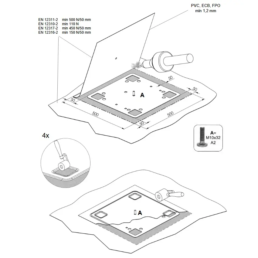 Set med skruvar 32mm och packningar för monteringsplatta och "Z"-fäste CWL för solcellssystem.