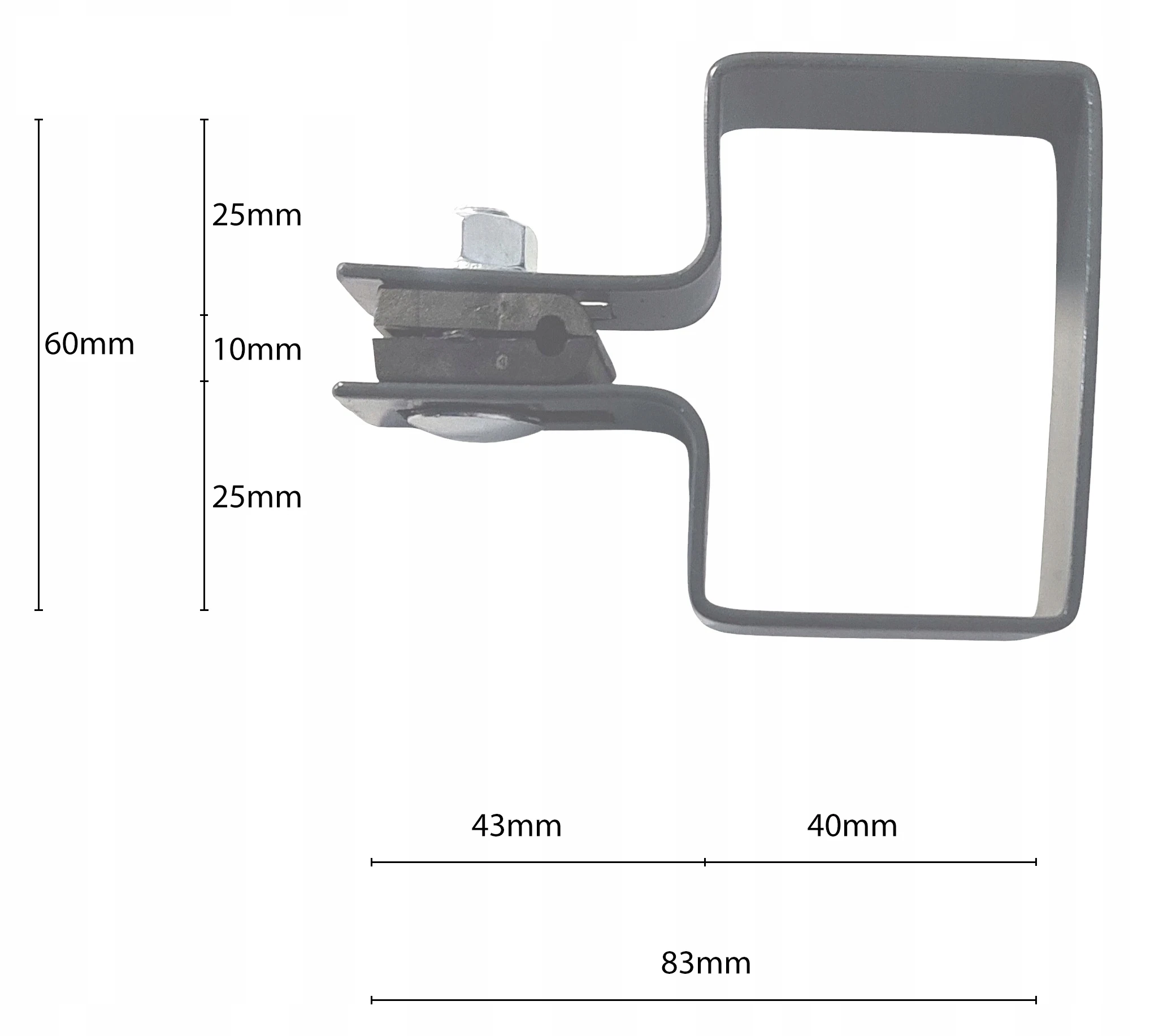 Ändklämma för stängselpaneler 40x60 är ett robust konstruktionselement som används för montering av stängselpaneler till stolpar med tvärsnittet 40x60 mm.