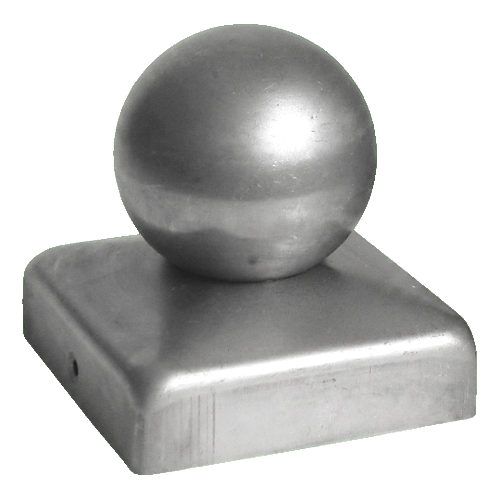 Ståltak för staket 120×120 mm med dekorativ kula fi 80 mm – obehandlad