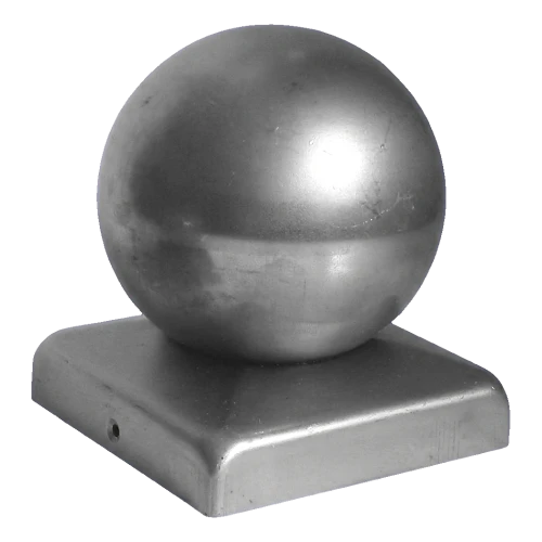 Ståltak för staket med dekorativ kula avsett för avslutning och skydd av stolpar med tvärsnitt 60×60 mm. Kulan med diameter fi 50 mm ger staketet en estetisk, representativ karaktär och utgör samtidigt en effektiv barriär mot vatteninträngning i stolpens inre. Produkten levereras i obehandlat skick — möjliggör valfri målningsfinish anpassad till staketets färgschema.