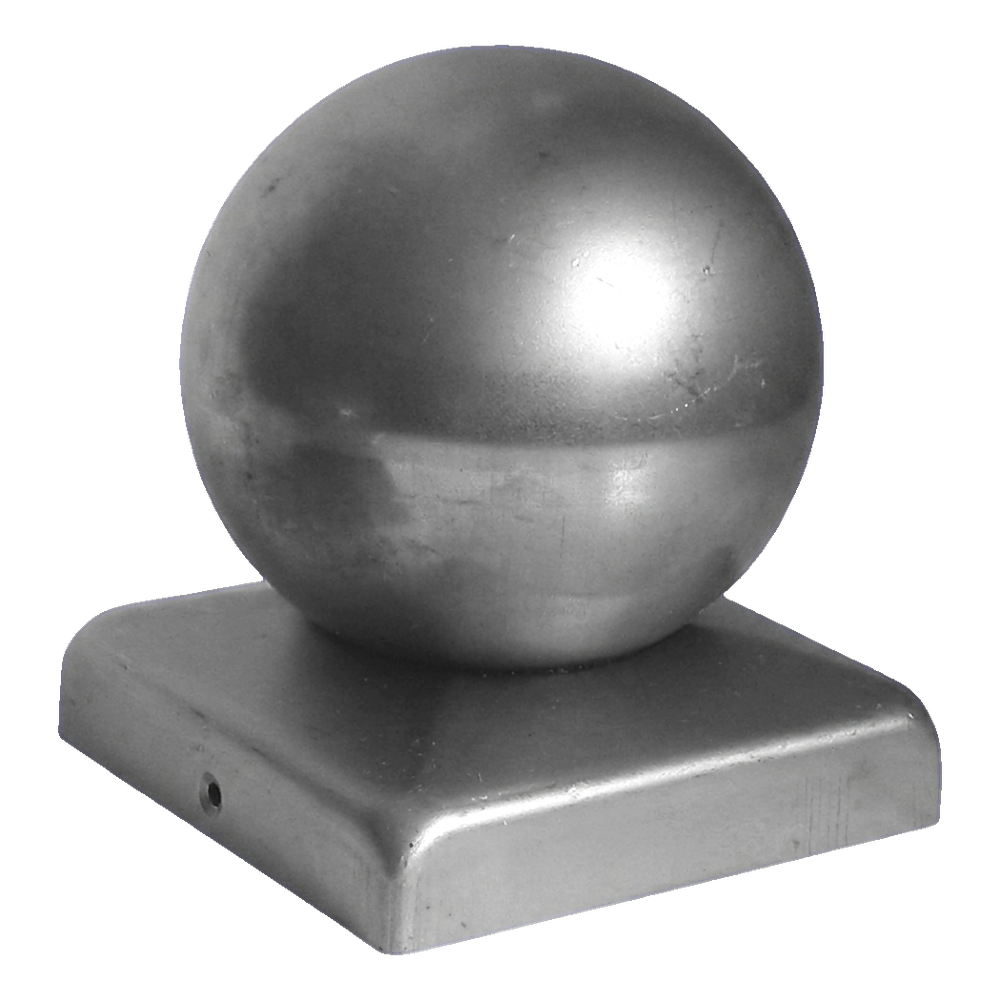 Ståltak för staket med dekorativ kula avsett för finish av stolpar med kvadratiskt tvärsnitt 40×40 mm. Skyddar stolpens övre kant mot korrosion orsakad av regn, snö och fukt, samtidigt som det ger staketet en estetisk, välarbetad look. Produkten levereras obehandlad — du kan måla den eller belägga den med valfri färg anpassad till kundens projekt.
