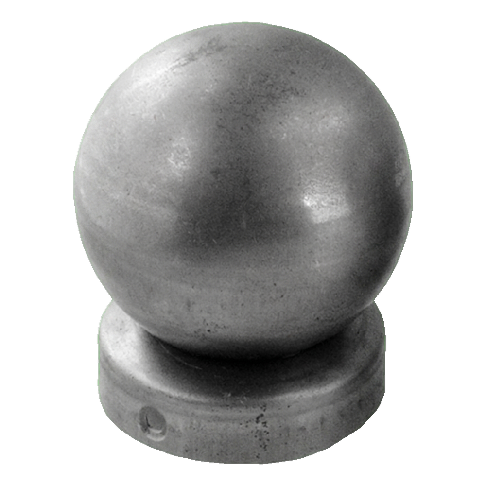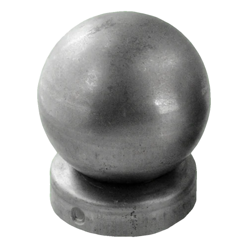 Ståltak för stängsel med dekorativ kula avsett för montering på runda stolpar med diameter fi 42 mm (5/4"). Kulan med diameter fi 60 mm ger stängslet en elegant, färdigställd look samtidigt som den skyddar stolpens insida mot regn, snö och föroreningar. Produkten levereras i obehandlat skick — redo för målning, galvanisering eller annan ytbehandling som passar stängselets estetik.