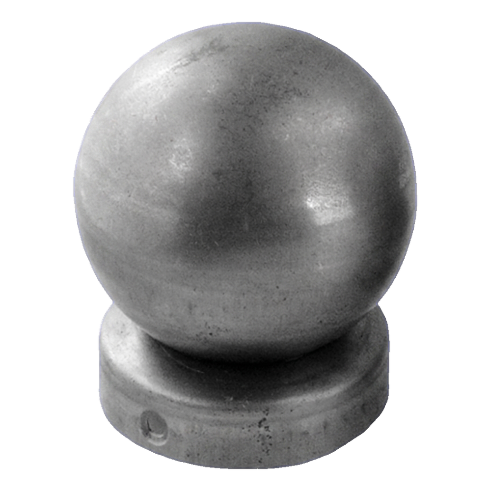 Ståltak med dekorativ kula avsett för montering på runda stolpar med diameter fi 60 mm (2"). Den dekorativa kulan med diameter fi 80 mm ger stängslet ett elegant, färdigt utseende samtidigt som den skyddar stolpens insida mot vatten, snö och andra väderförhållanden. Produkten levereras i omålat tillstånd — den kan målas eller korrosionsskyddas på egen hand för att anpassa färgen till hela stängslets konstruktion.